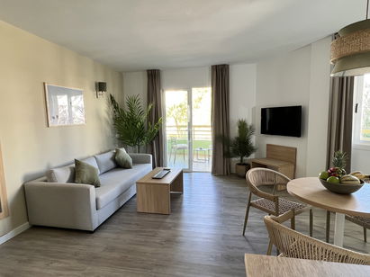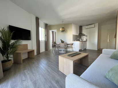 Apartments with one bedroom with 2 single beds 100x200 and a living room with one single sofa-bed. Kitchenette, mini-fridge, balcony, bathroom, air conditioning and TV.